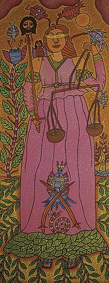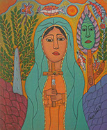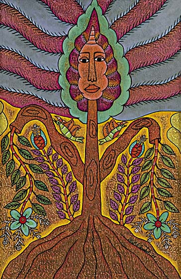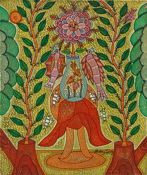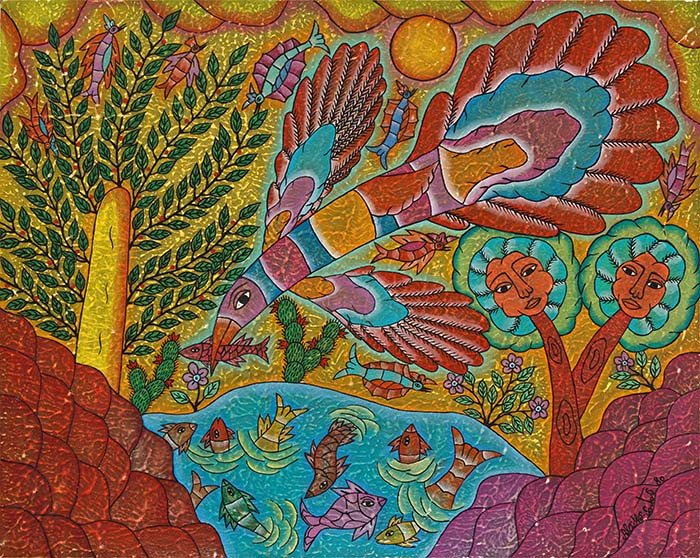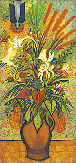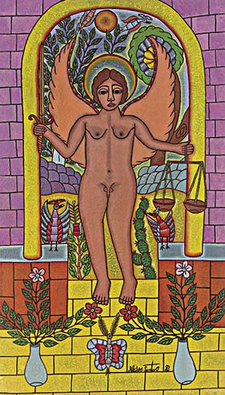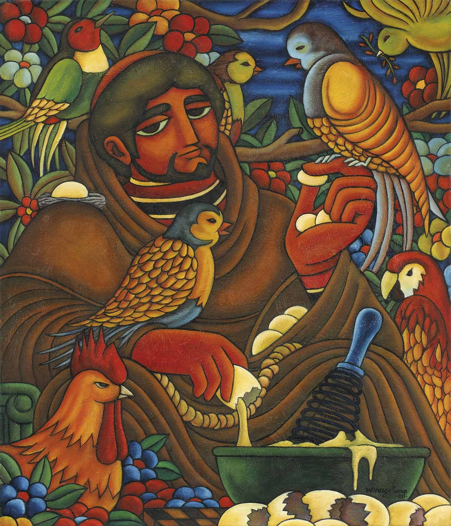 Tudo em suas telas é pessoal – o grafismo, a cor, o simbolismo e de um poder capaz de impressionar o espectador pelo que contém de grandeza.