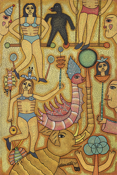 O pintor Wellington Virgolino também integra o acervo da galeria, com suas telas vibrantes e multicoloridas.