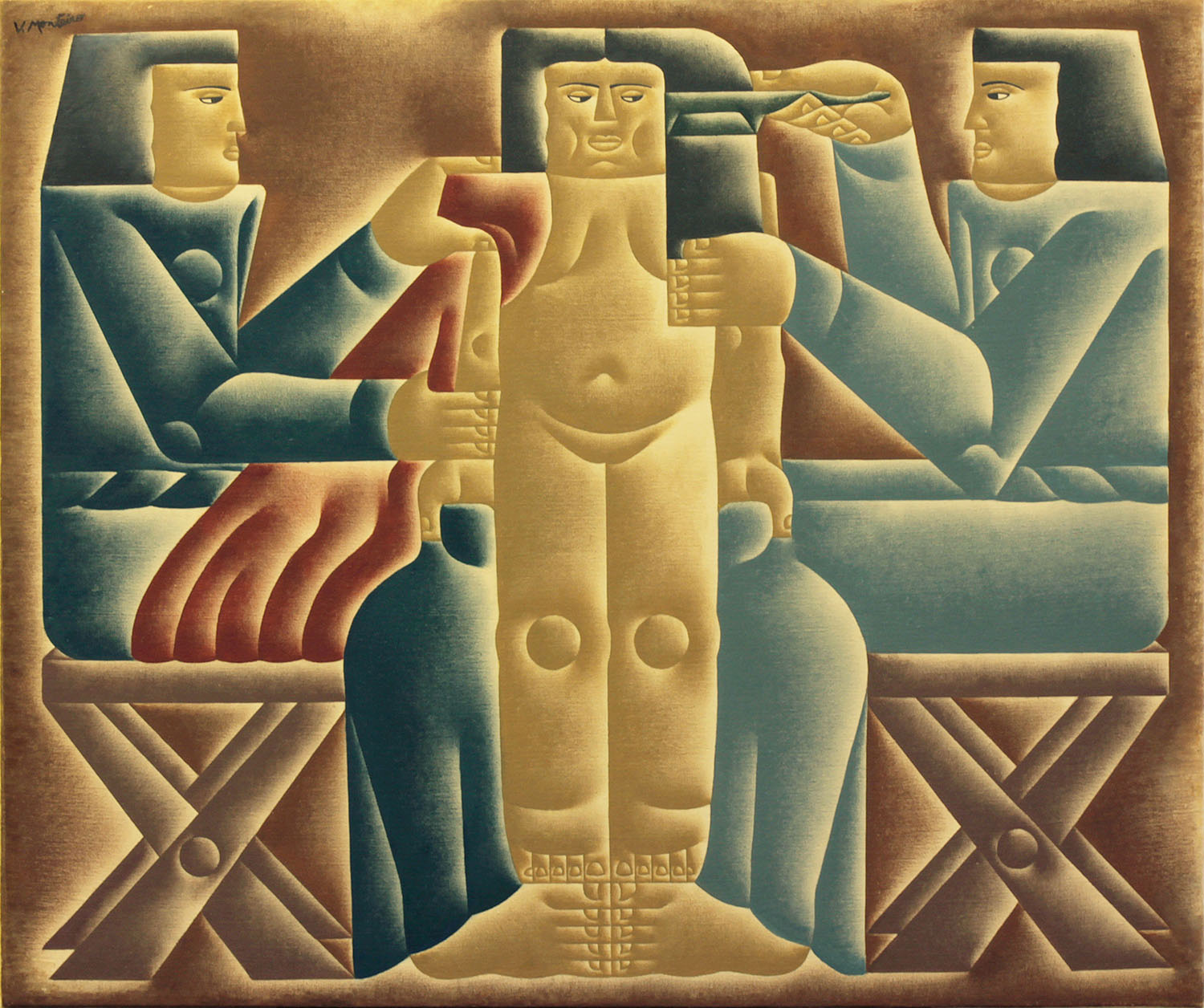 Mas esse tempo todo ele não se esqueceu de criar um estilo inconfundível e coerente, partindo de três influências principais: a arte indígena de Marajó, o art déco e o cubismo estilizado, com certa semelhança ao de Léger.